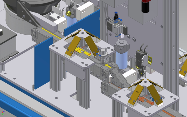 Es wurde eine Zuführbaugruppe für eine automatische Montageanlage entworfen, die Trägerelemente für eine Elektrobaugruppe im Automotivbereich einer automatischen Montagelinie bereitstellt.